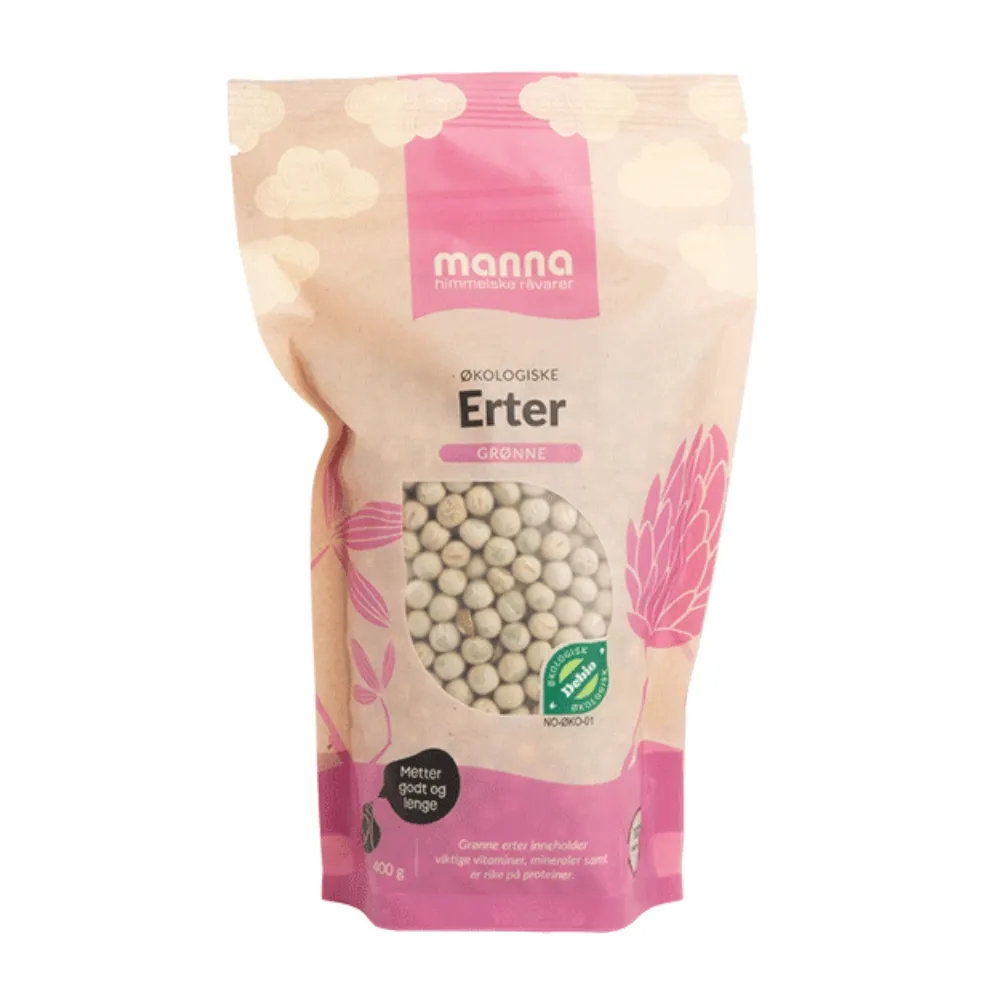 Hos Manna arbeider vi med økologiske råvarer der kvaliteten starter ved opprinnelsen. Ertene dyrkes med respekt for naturen og gir et rent og naturlig produkt til kjøkkenet ditt.