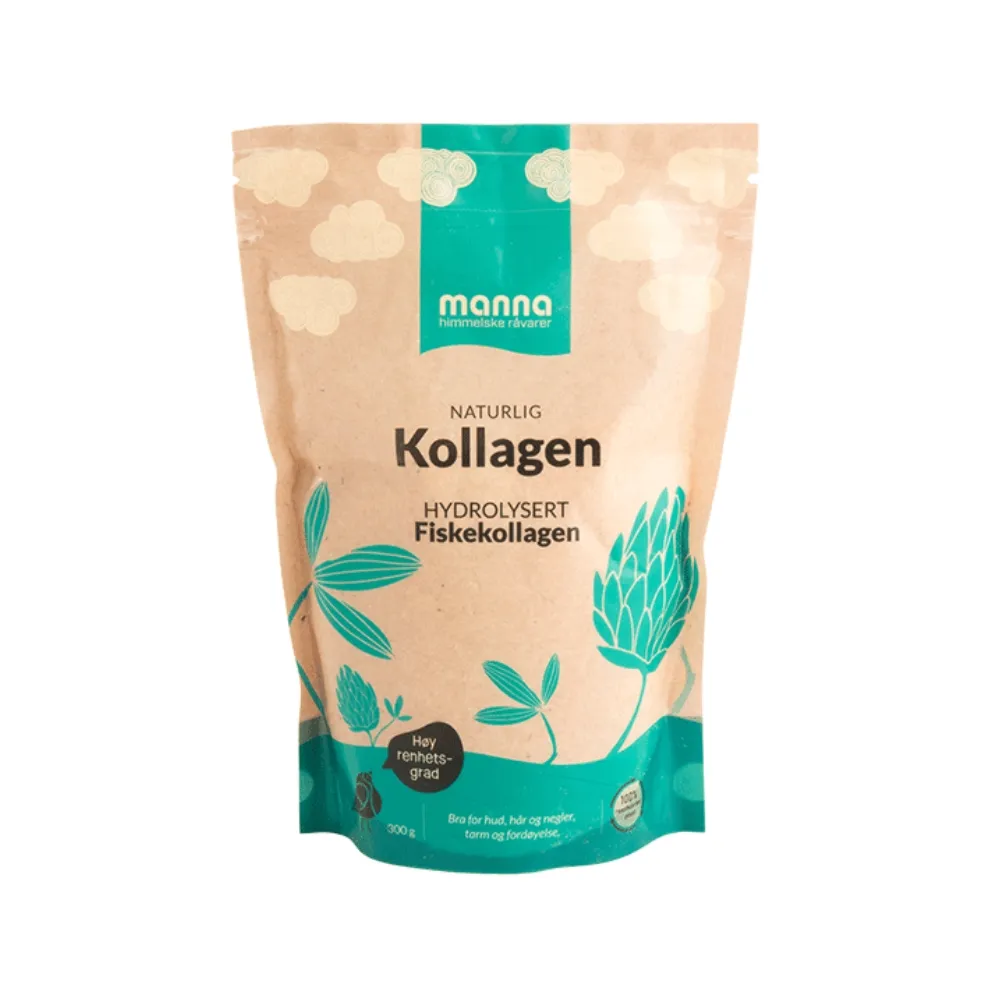 Manna kollagen fra fisk er et hydrolysert fiskekollagen av høy kvalitet som enkelt kan tilsettes i det daglige kostholdet. Kollagenet er fremstilt for å gi god opptakelighet i kroppen og inneholder naturlige aminosyrer som er viktige byggesteiner for hud, hår, negler og bindevev.