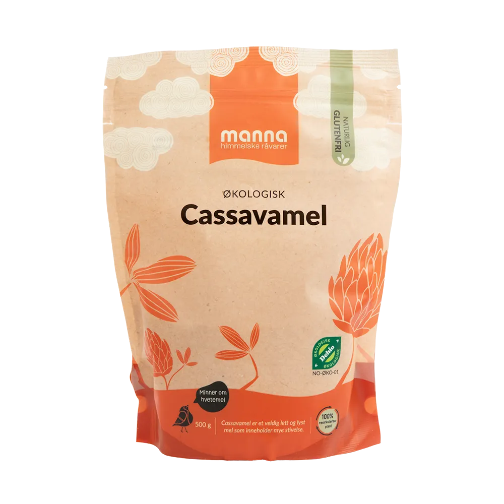 Manna cassavamel er laget av økologisk cassavarot som er tørket og finmalt til et lyst og mildt mel. Melet har en nøytral smak og en fin tekstur som gjør det godt egnet i mange typer matlaging og baking.