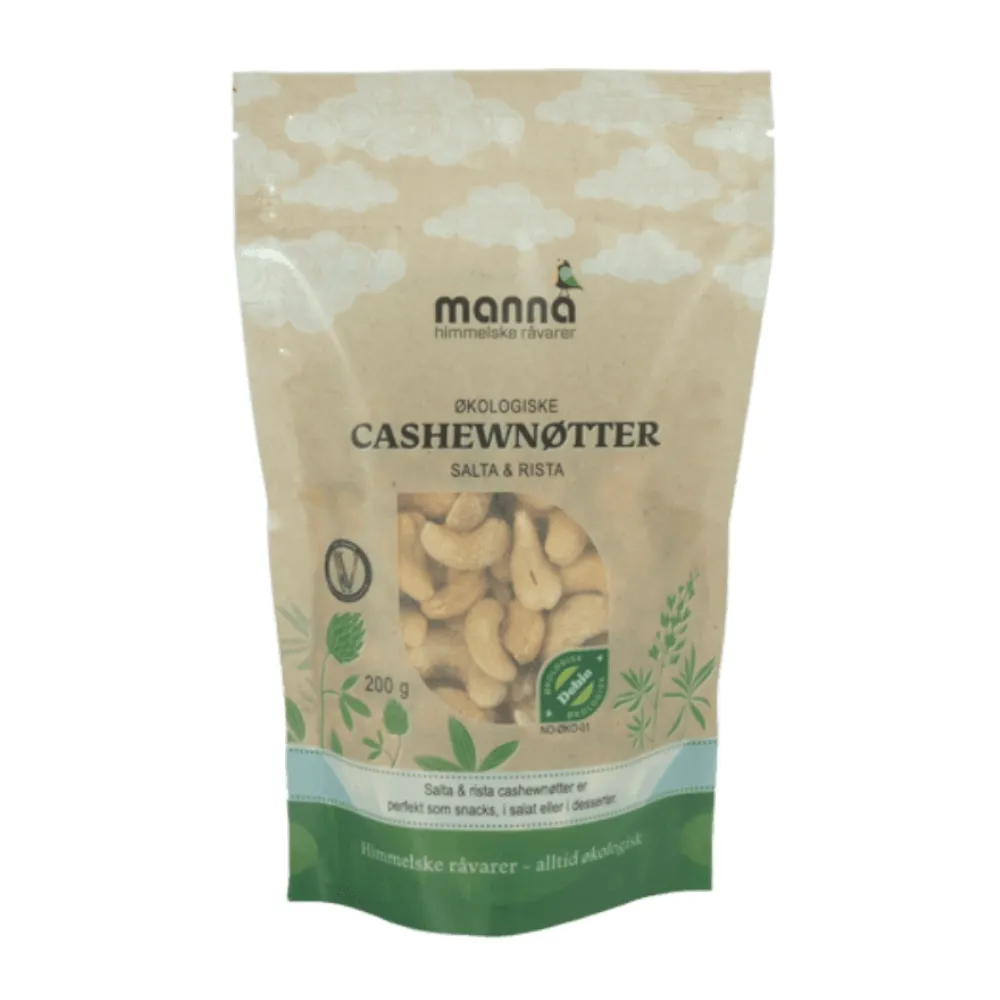 Hos Manna arbeider vi med økologiske råvarer der kvaliteten starter ved opprinnelsen. Salta og rista cashewnøtter fra Manna er laget for deg som vil ha en enkel snack med rene ingredienser og god nøttesmak.